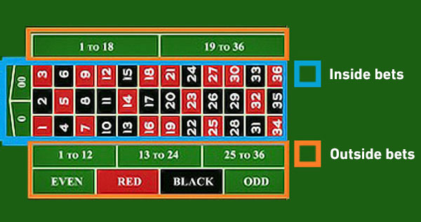 - Apuestas internas: apuesta a los 37 o 38 números posibles de la mesa de la ruleta.